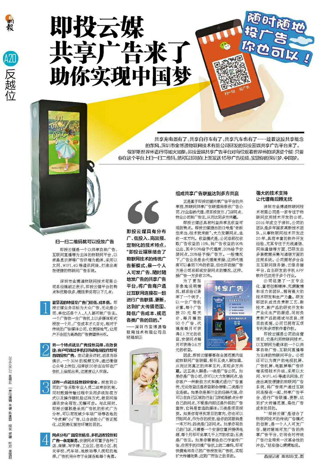 6月22日《晶报》用了一个整版,以《即投云媒共享广告来了
